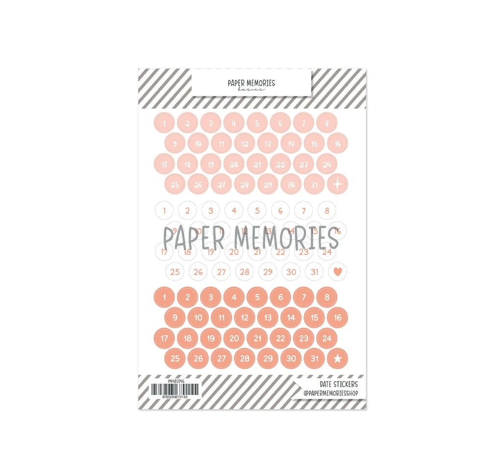 These date stickers are an all-time perfect basic to add to any project. These small stickers are playful and ideal for adding to any journaling, titles, or as details on your project.