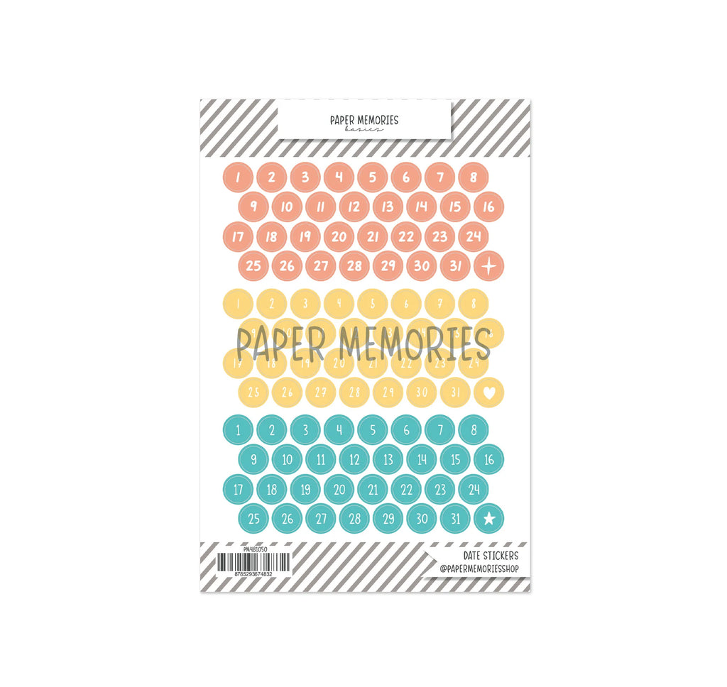 These date stickers are an all-time perfect basic to add to any project. These small stickers are playful and ideal for adding to any journaling, titles, or as details on your project.