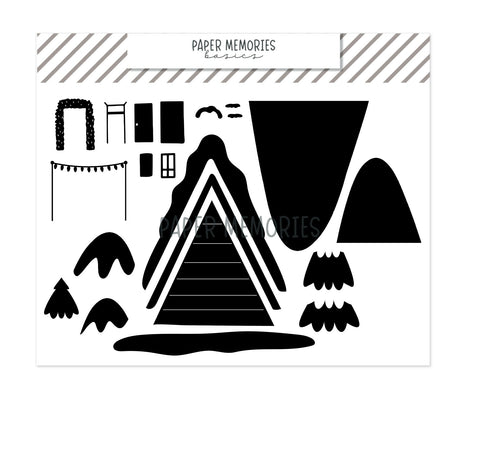 - Size of the dies: Approx. 14 x 11,4 cm (cabin) / 8,3 x 10,4 (big mountain) / 5,9 x 5,9 cm (small mountain) / 4,2 x 6,4 (tree)