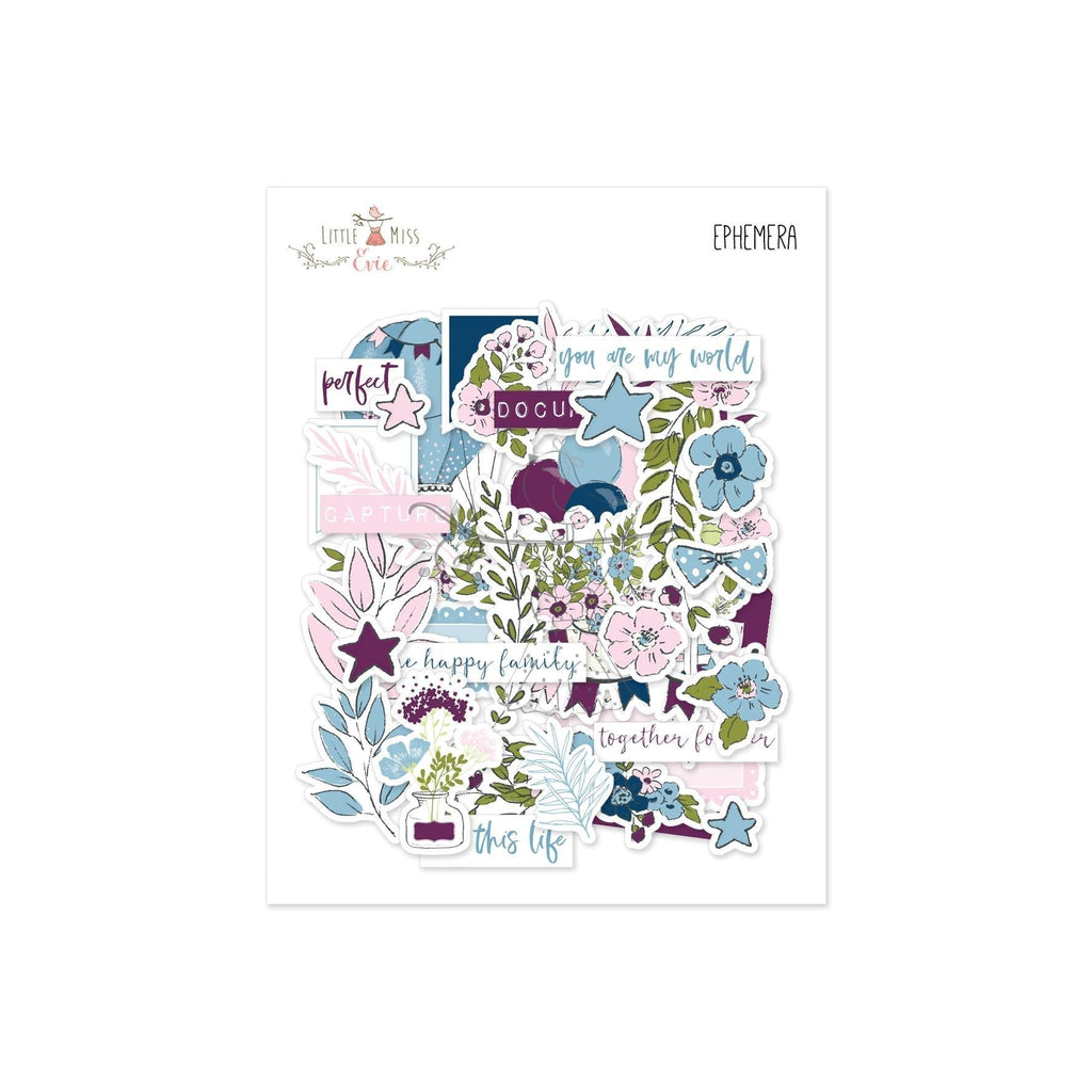 Ephemera, or die-cuts, are high-quality printed shapes, words, or icons on sturdy white paper.