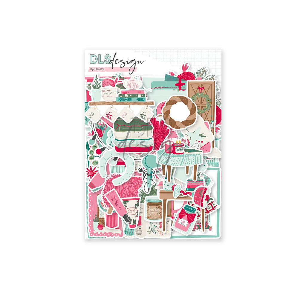 Ephemera, or die-cuts, are high-quality printed shapes, words, or icons on sturdy white paper.