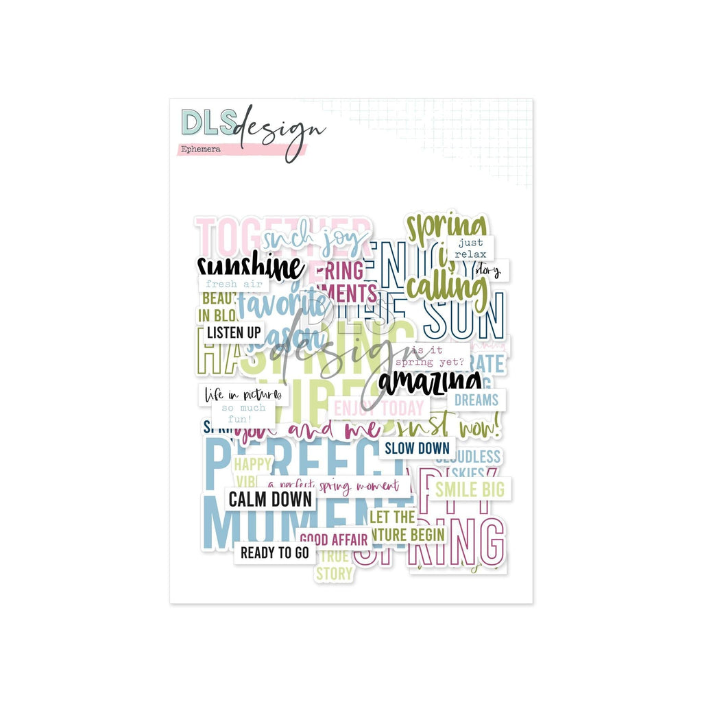 Ephemera, or die-cuts, are high-quality printed shapes, words, or icons on sturdy white paper.