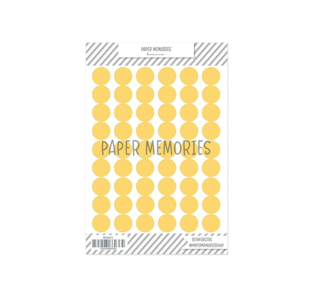 Reinforcers are Vinyl and thin, making them perfect for even projects that can’t handle thickness, like planners and bullet journals. But they work great in any project, even your scrapbook, pocket pages, or mini books.