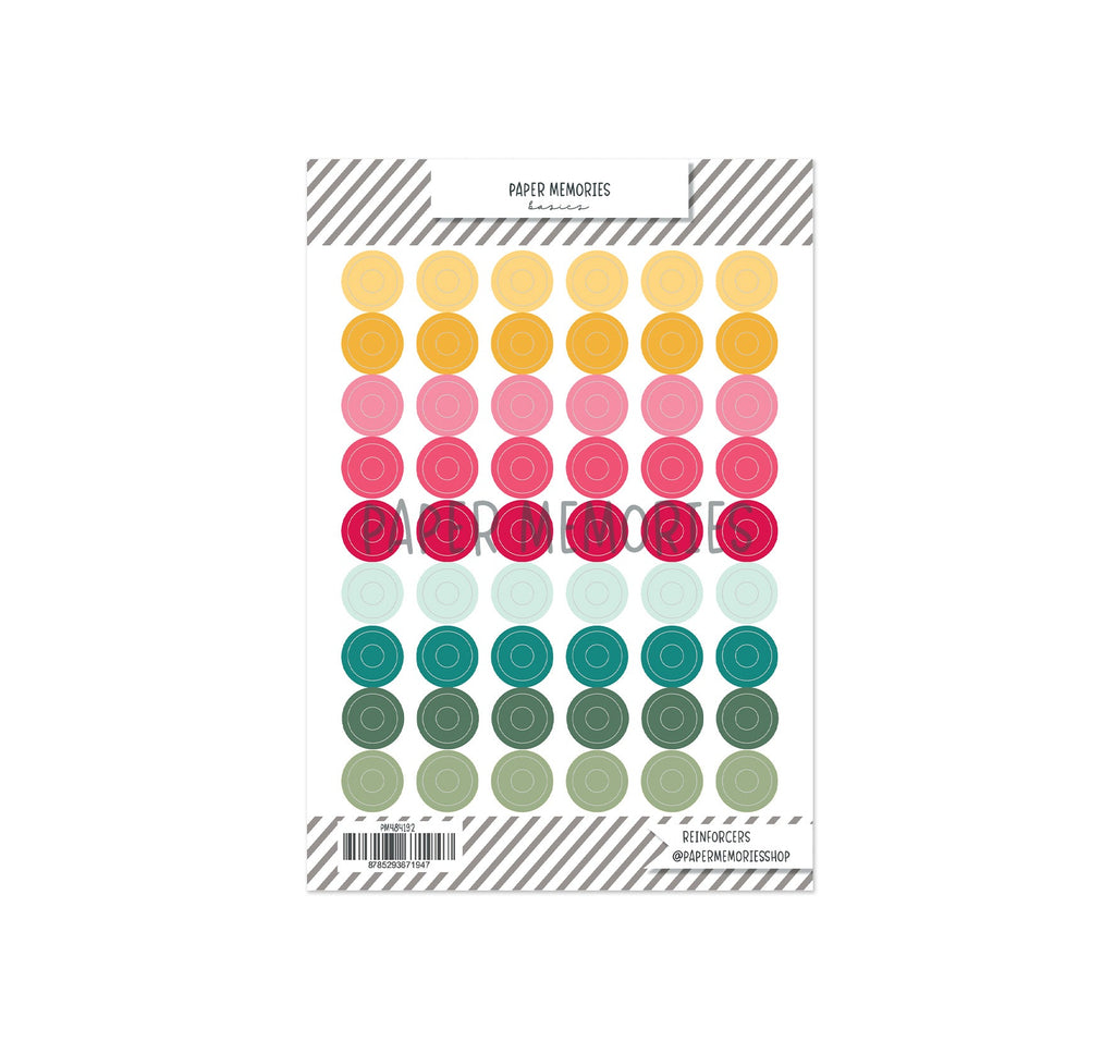 Reinforcers are Vinyl and thin, making them perfect for even projects that can’t handle thickness, like planners and bullet journals. But they work great in any project, even your scrapbook, pocket pages, or mini books.
