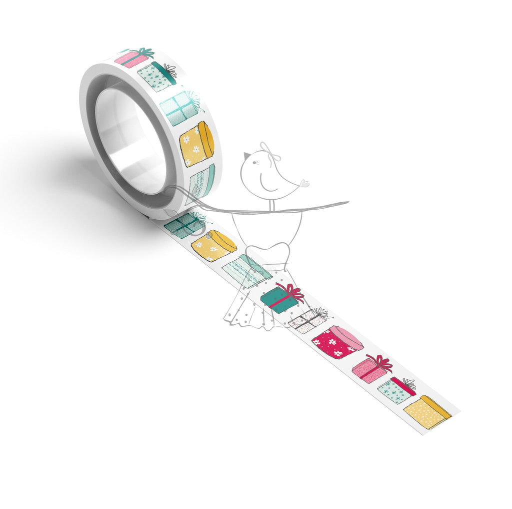 Washi Tape also called masking tape, is semi-transparent and has designs printed on it. The tape is rolled on a small chipboard base to make it easy to use and store.