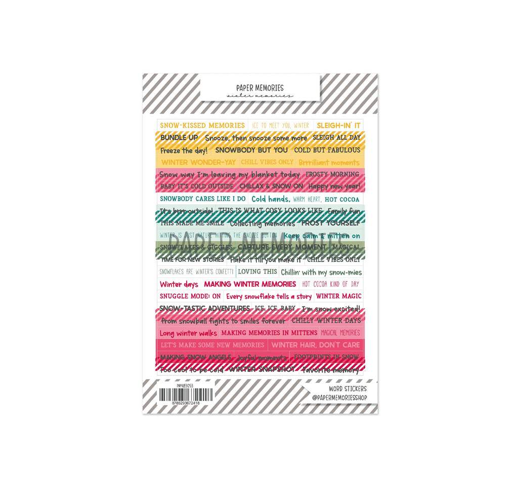 Word stickers are an all-time perfect basic to add to any project. These small stickers are playful and ideal for adding to any journaling, titles, or details on your project.